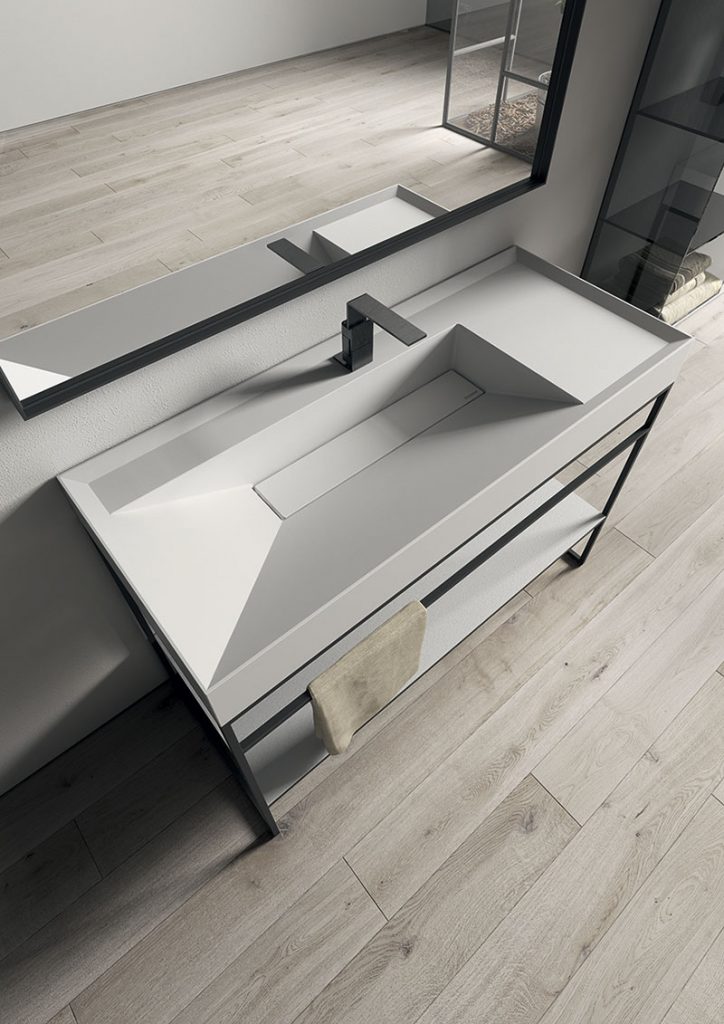 • Dogma, che prende il nome dall’omonimo lavabo in Cristalplant, è una sintesi stilistica tra design scandinavo e stile industriale;