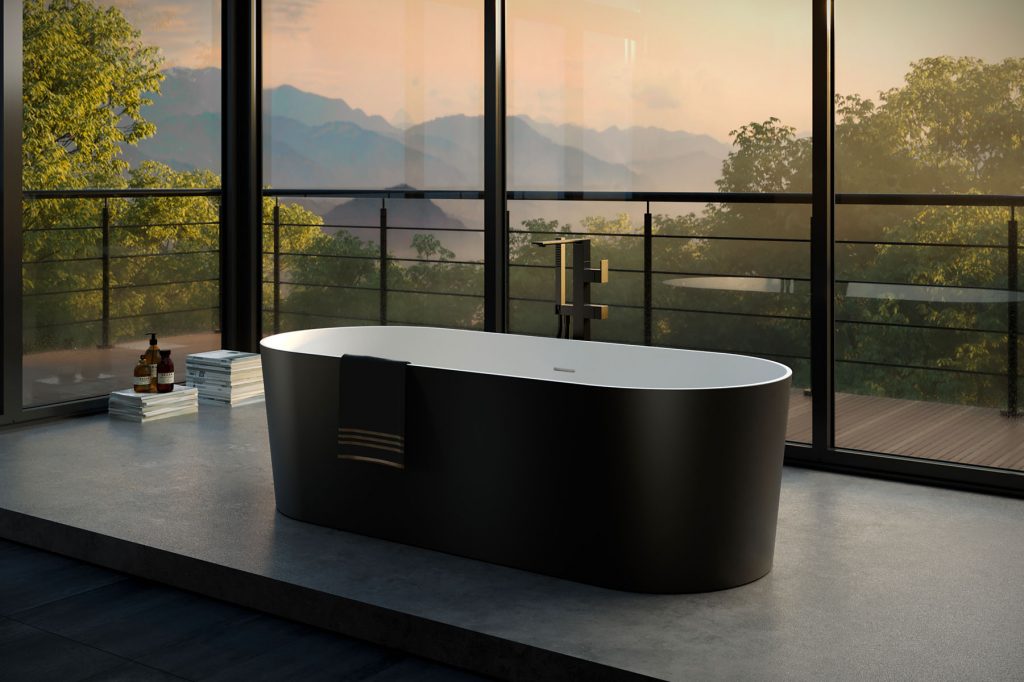 Le vasche Deluxe (in Aquatek Light) e Soul (in M-Solid) sono verniciate esternamente in Nero e Medioevo: anche la vasca da bagno oggi può essere abbinata ai mobili e ai complementi.