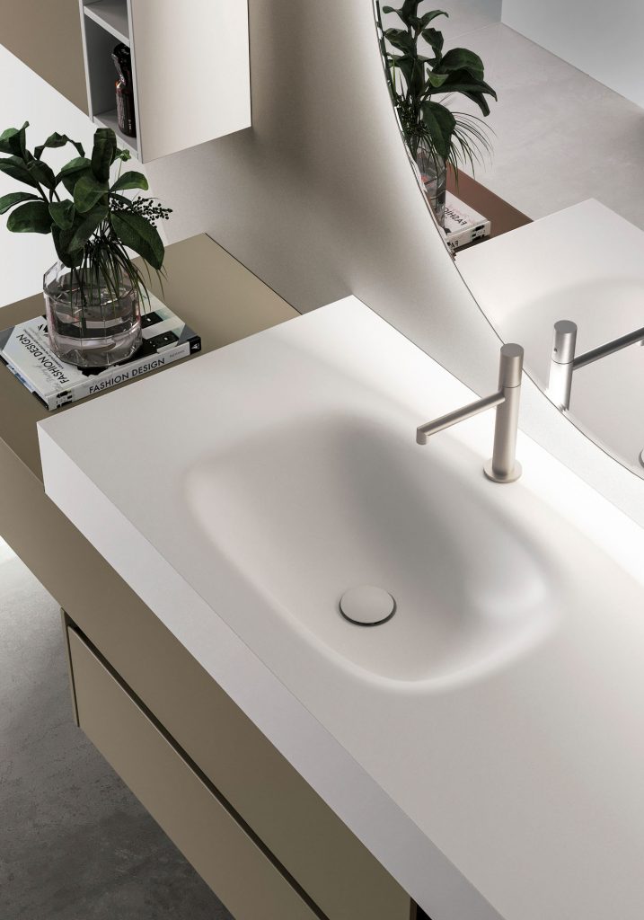 Top in Aquatek con vasca integrata dalle linee morbide, con copripiletta coordinata | Collezione Nyù