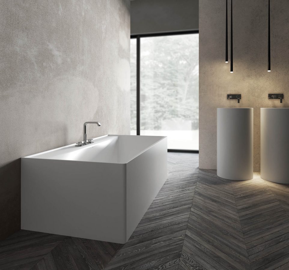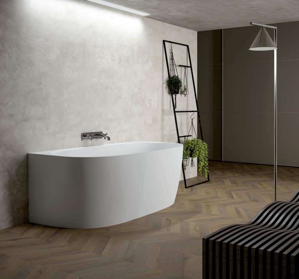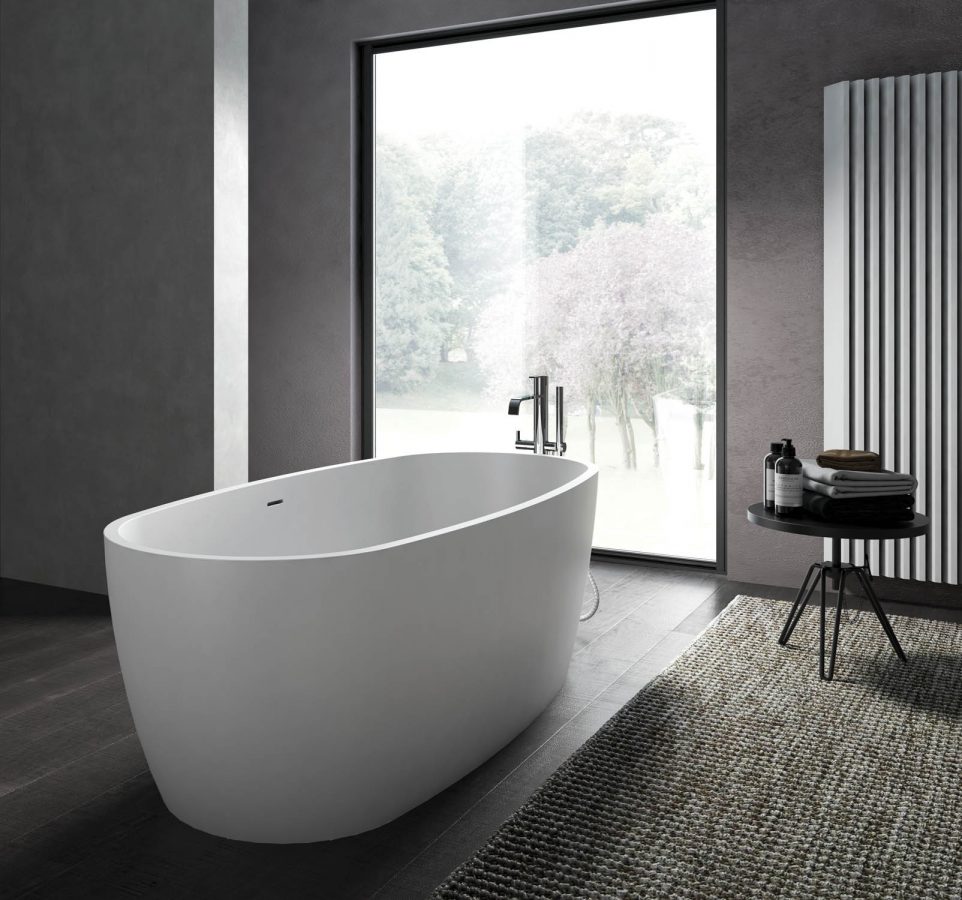 Prima di parlare di materiali, un consiglio generale relativo alla tipologia di vasca: freestanding o in appoggio a parete. Nel primo caso, ricorda di prevedere spazio sufficiente intorno alla vasca per accedere in modo comodo al retro del catino, altrimenti con il tempo si accumuleranno polvere e sporcizia difficili da rimuovere. Nel secondo sarà invece facile pulire il punto in cui la vasca è appoggiata a parete (attenzione unicamente a curare l’igiene del silicone di finitura tra bordo e rivestimento). A questo proposito, potrebbe interessarti il nostro articolo su come scegliere la vasca da bagno.