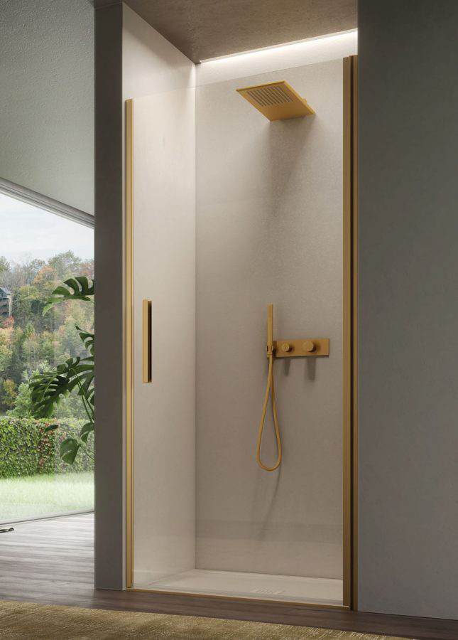 La porta doccia ad anta battente è quella che necessita del maggior spazio esterno perché il suo movimento in apertura può dar fastidio ad arredi o persone di passaggio. Esteticamente molto elegante e minimale, è una delle soluzioni più amate. Perfetta per nicchie medio-piccole, mentre è meno adatta oltre i 90 cm. Attenzione al verso di apertura: va deciso anche in modo da agevolare l’accesso agli accappatoi.