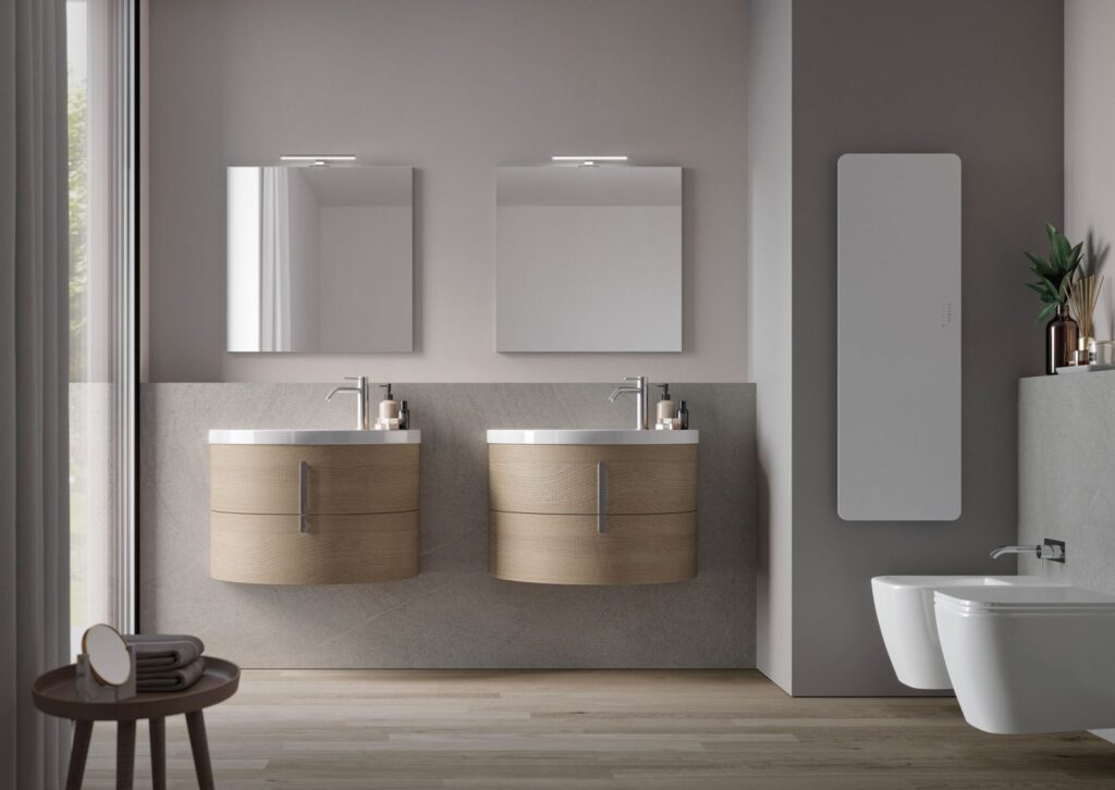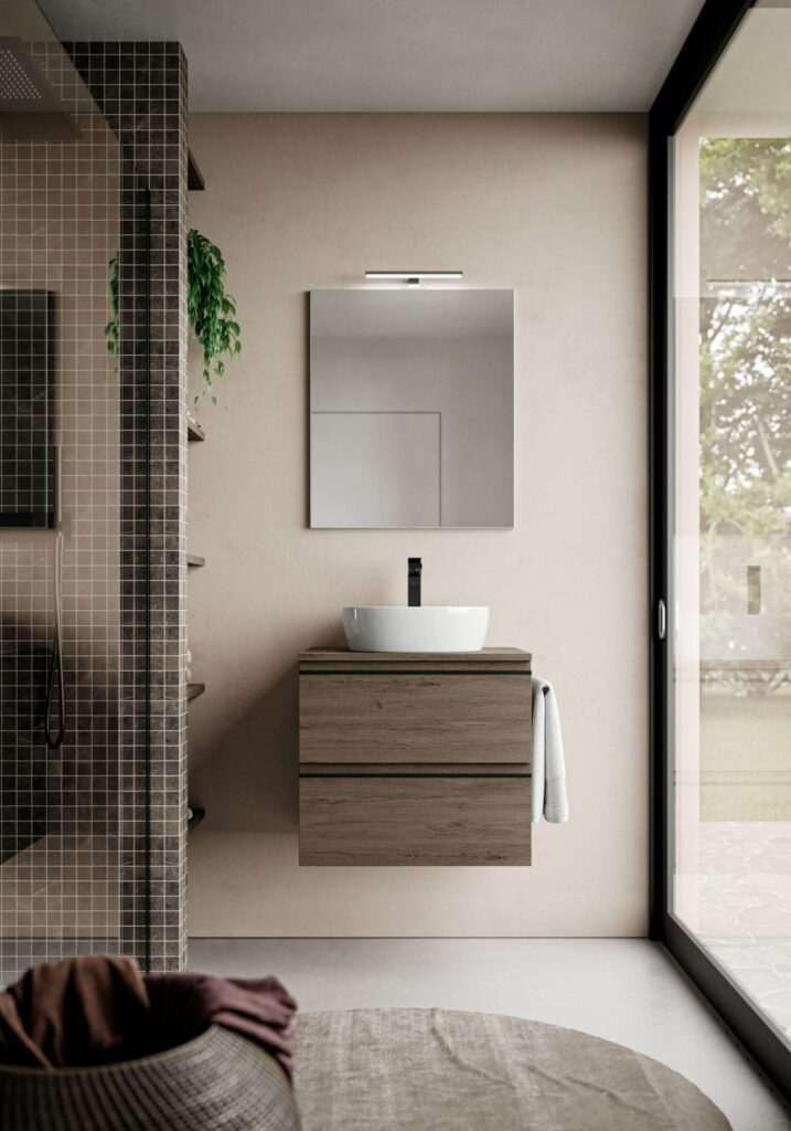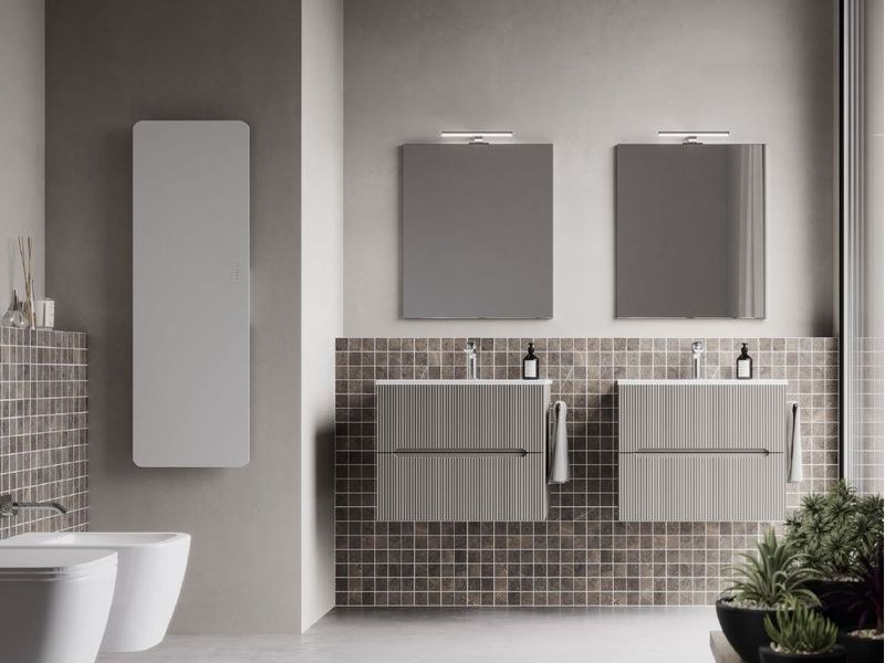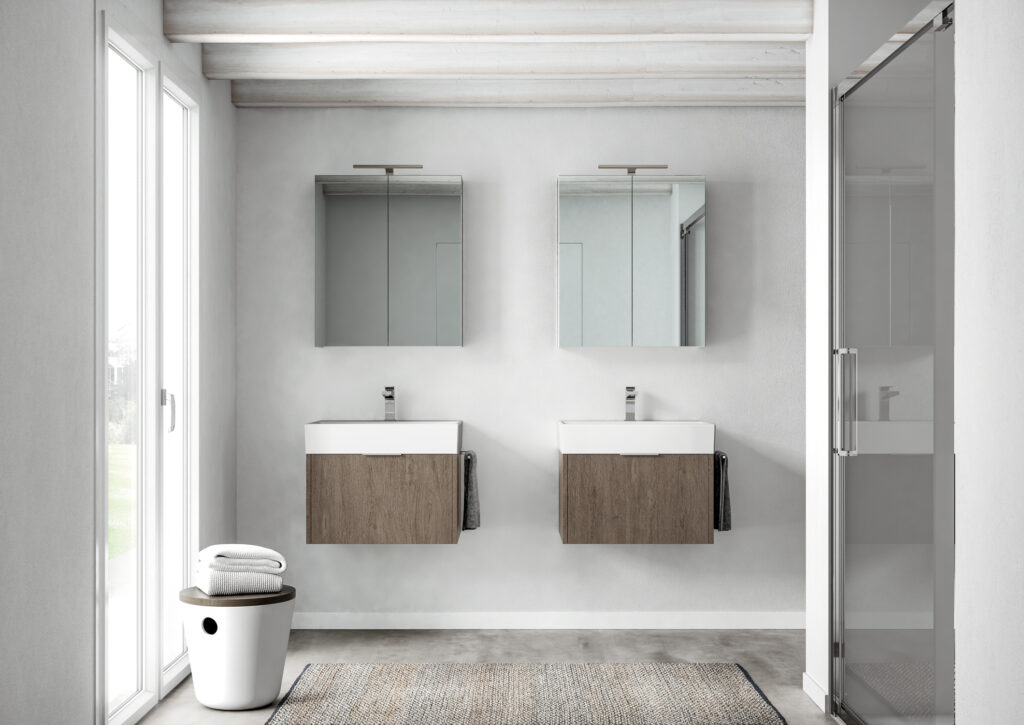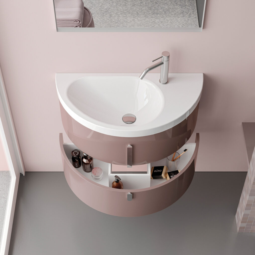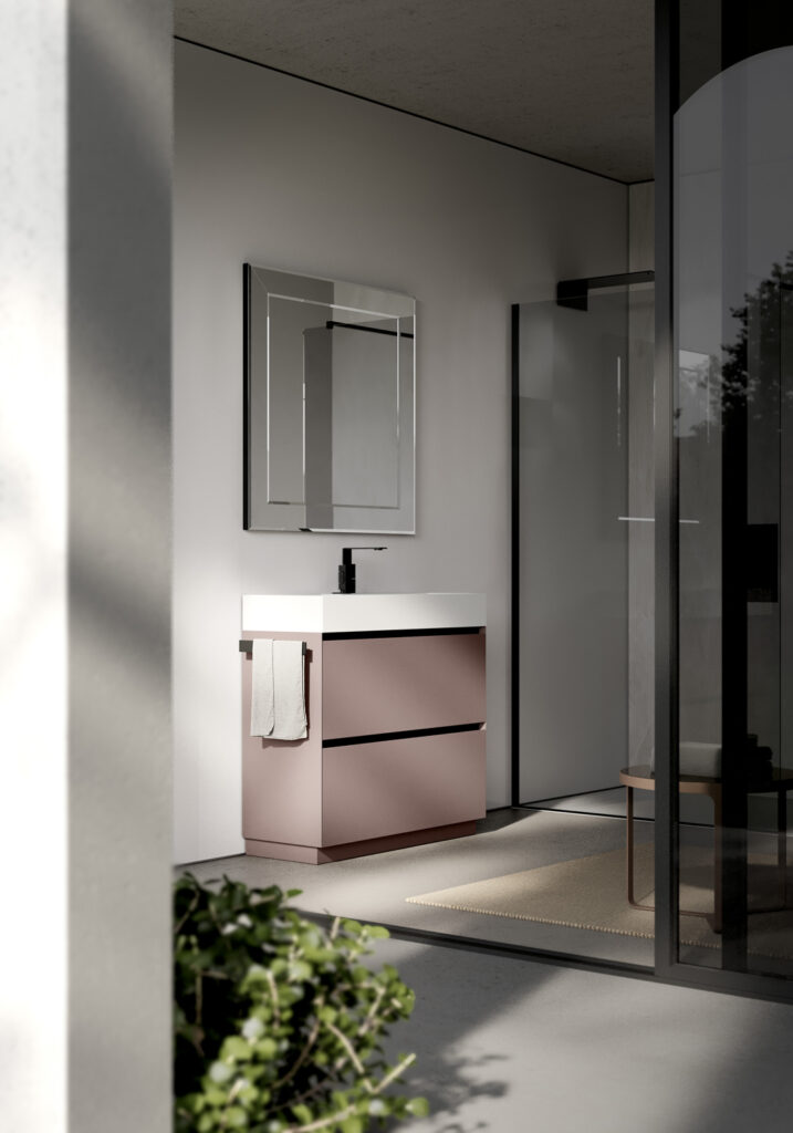 If the bathroom can accommodate a slightly larger vanity unit (still within the 60/70 cm width range), options widen to include floor-standing solutions, for example, which usually feature an additional deep drawer. If possible, depths become more generous, providing for useful interior storage space for organising bathroom essentials.