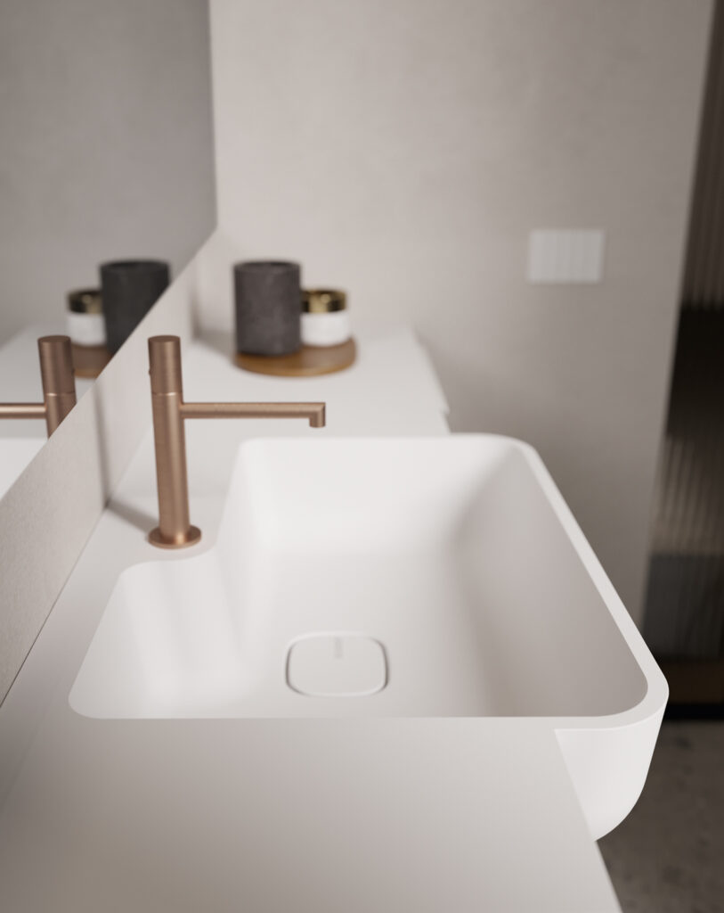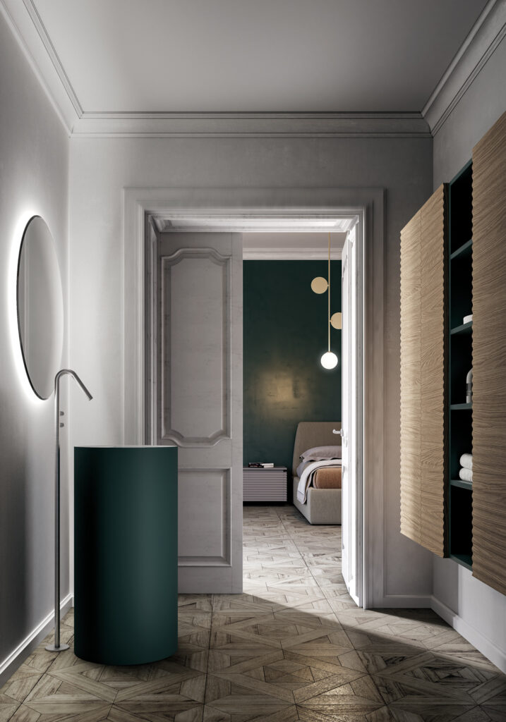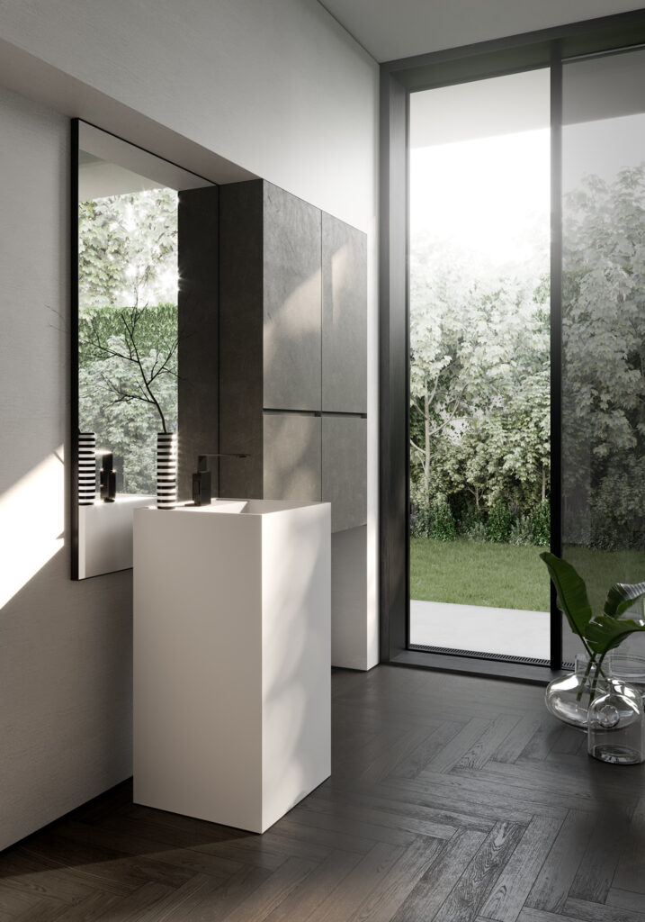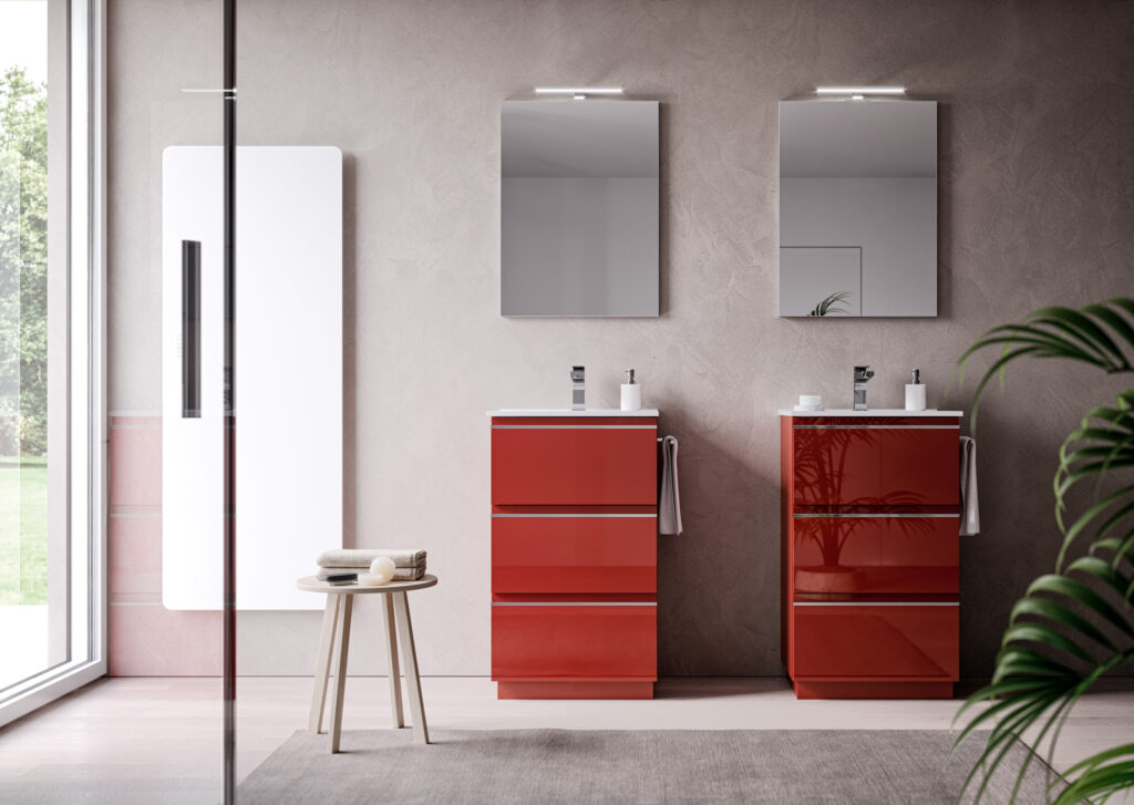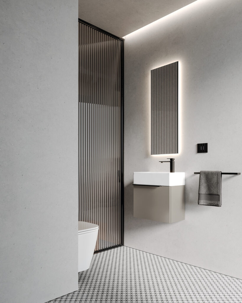 If the bathroom can accommodate a slightly larger vanity unit (still within the 60/70 cm width range), options widen to include floor-standing solutions, for example, which usually feature an additional deep drawer. If possible, depths become more generous, providing for useful interior storage space for organising bathroom essentials.