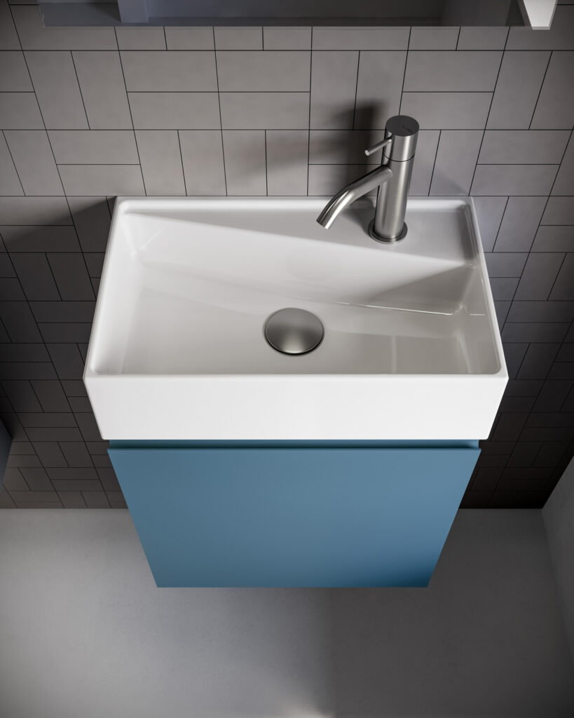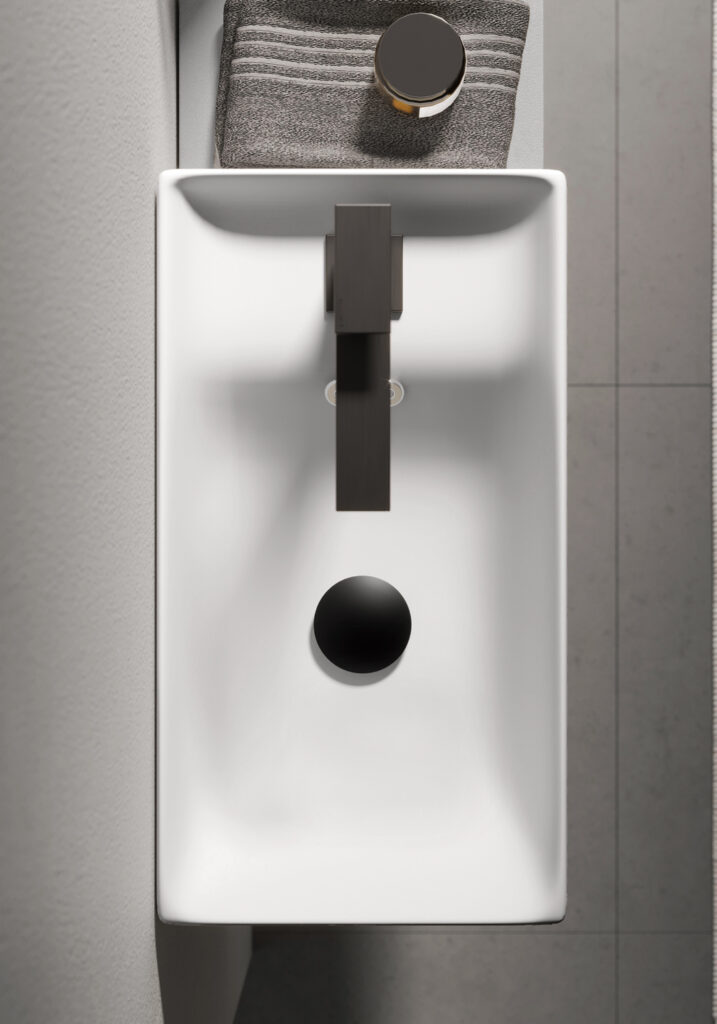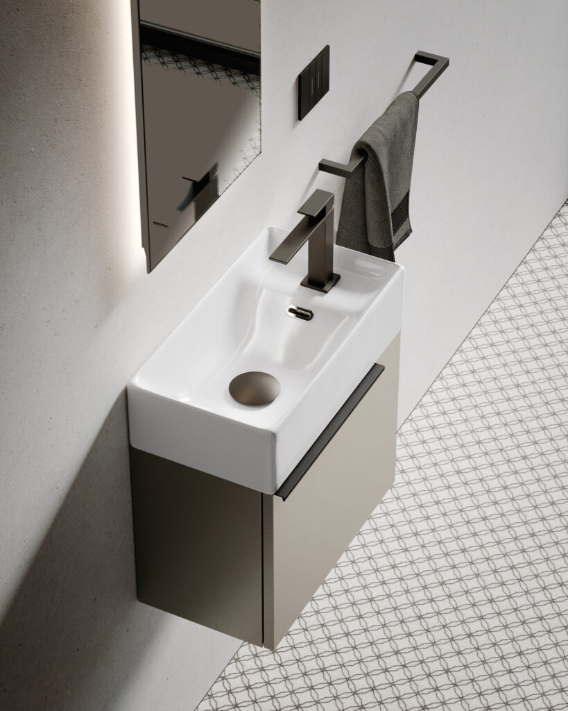 The topic of today’s post is small bathrooms, those very tiny bathrooms where you have to think hard about how to fit the sanitary ware (or at least the toilet) and a small washbasin/cabinet in there. They are generally cloakrooms, guest bathrooms or bathrooms that serve only the living area: essentially, bathrooms with a washbasin at least large enough to wash your hands.