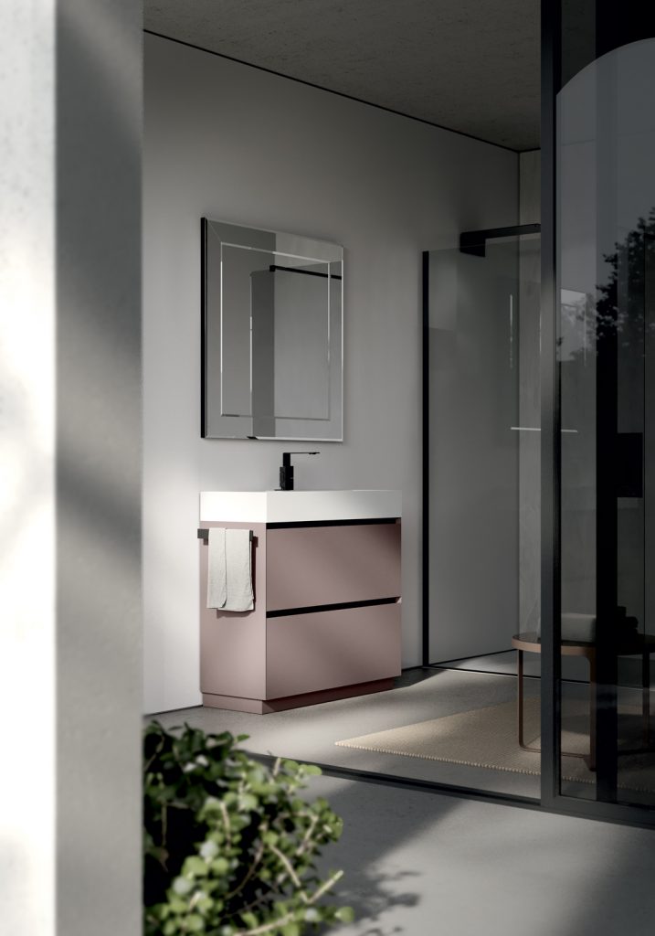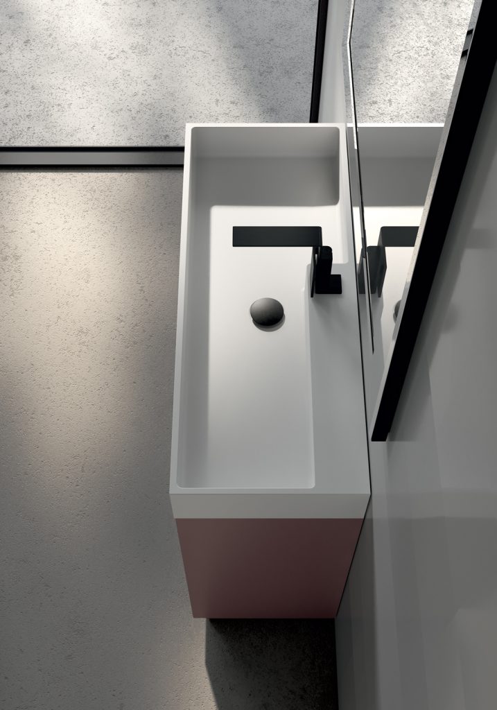 After determining the location of sanitaryware, shower and/or bathtub, the remaining space can be used for the bathroom cabinet (or even just the washbasin), which can come in different sizes. Today’s furniture collections are mostly modular and adaptable to any space, both in width and depth.