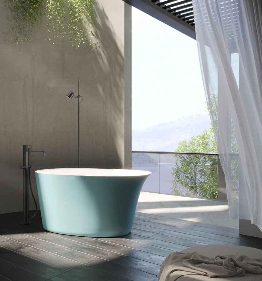 An average bathtub measures 70 x 170 cm: the most common and widely used size… but luckily, today there are many different and versatile solutions to cater to your relaxation needs even in a smaller bathroom. In the freestanding version, the bathtub can even be placed diagonally in one of the two bottom corners of a long bathroom to create movement.