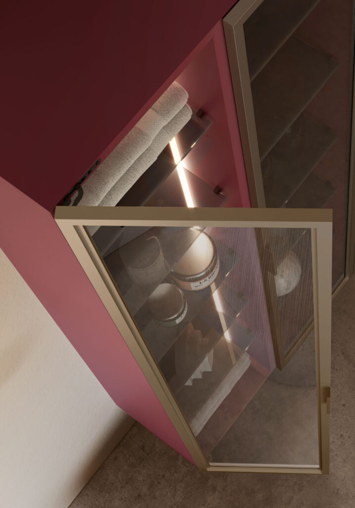 Una novità che rivela l’attenzione per i dettagli e che si svela solo aprendo i cassetti: le nuove spondine in acciaio pieno (8 mm) color antracite che rendono il movimento ancora più stabile, e che possono essere sostituite dalla versione in vetro fumè abbinate ai moduli a giorno.