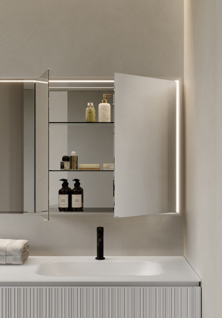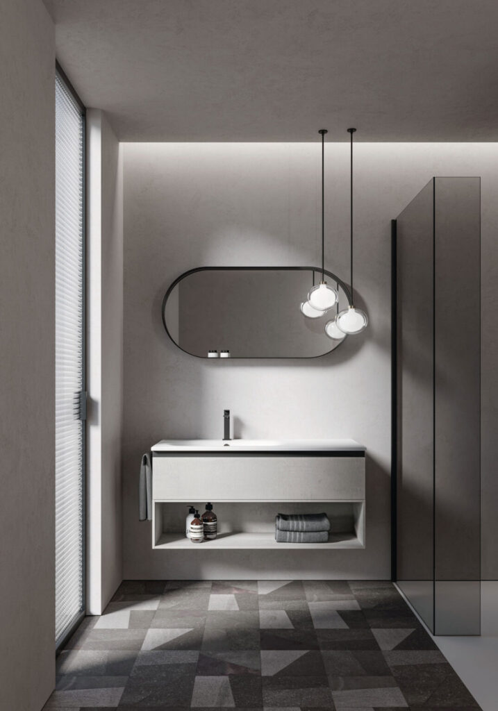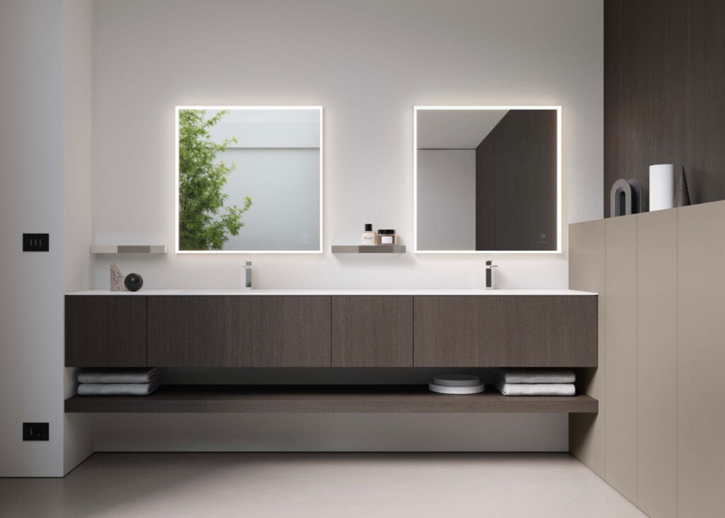 L’essenziale è definire la tipologia dello specchio già in fase di progetto, non rimandando la scelta a fine arredamento: pur essendo un “complemento”, infatti, fa parte della composizione stessa ed è in grado di modificare radicalmente l’aspetto del bagno, se non anche la percezione dei suoi spazi e l’illuminazione complessiva dell’ambiente, essendo sia fonte di luce riflessa che fonte di luce diretta grazie alle lampade integrate.