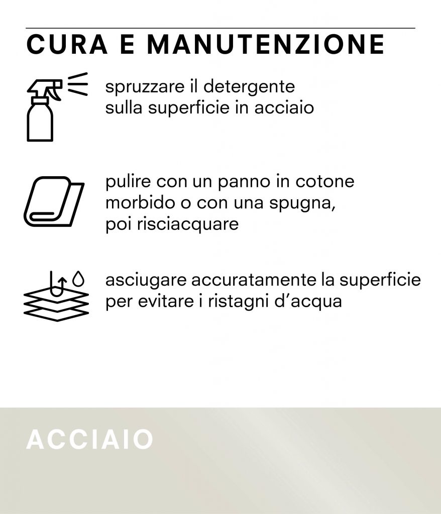 Attenzione invece a candeggina o acidi che possono danneggiare irrimediabilmente le finiture metalliche!