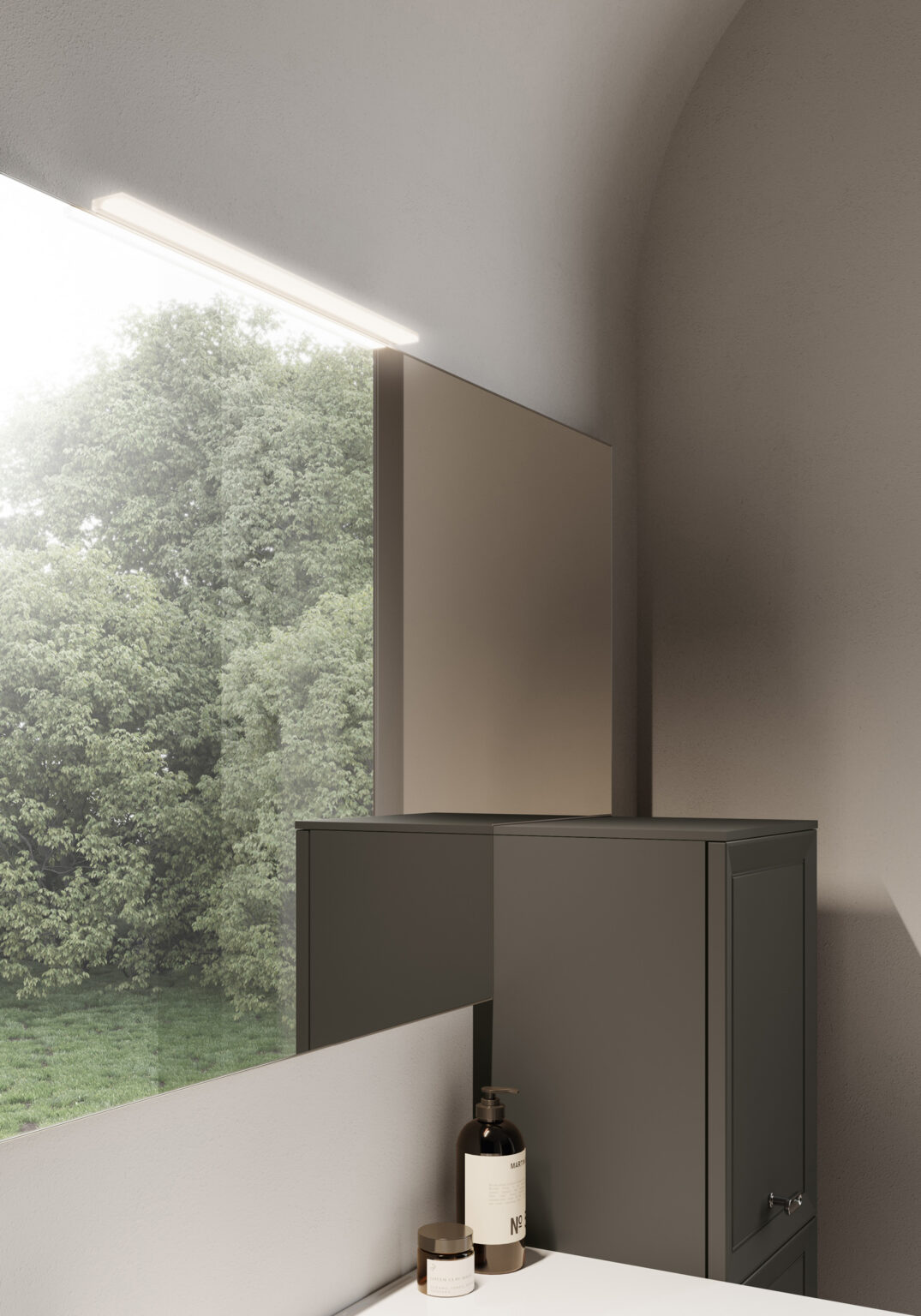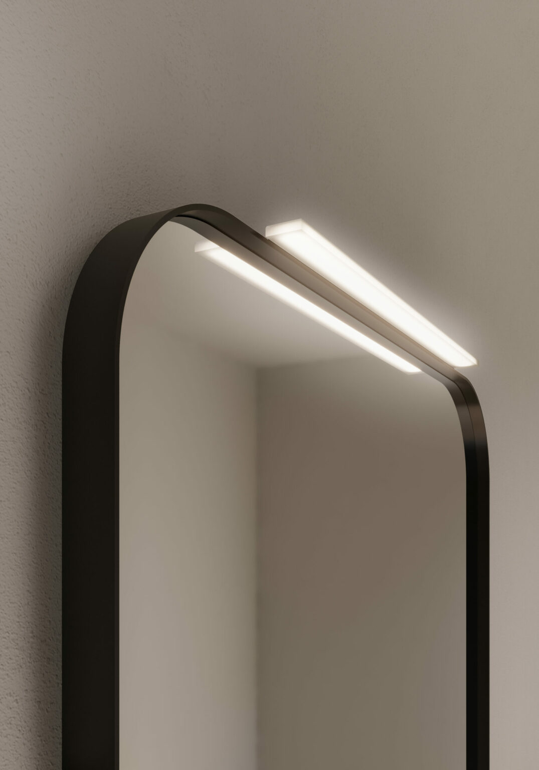 Lampada Piuma in Metacrilato. Installabile sulle specchiere Elma, Elmas, Lag/Lan, Prisma, Sat/Sal e Bijou. Dotata di illuminazione a LED. IP44 – 3000 K o 4000 K W 3 – Lm 900
