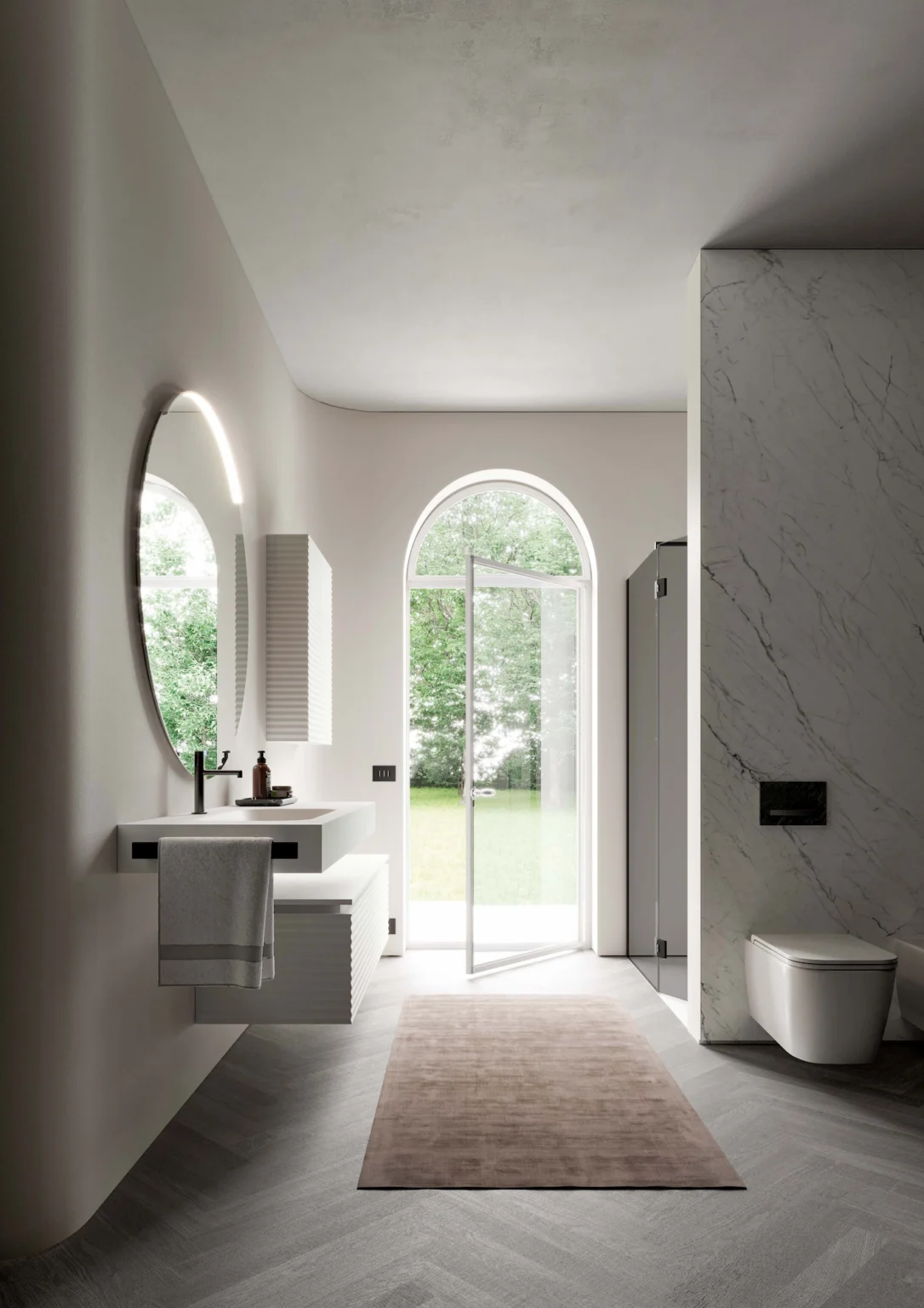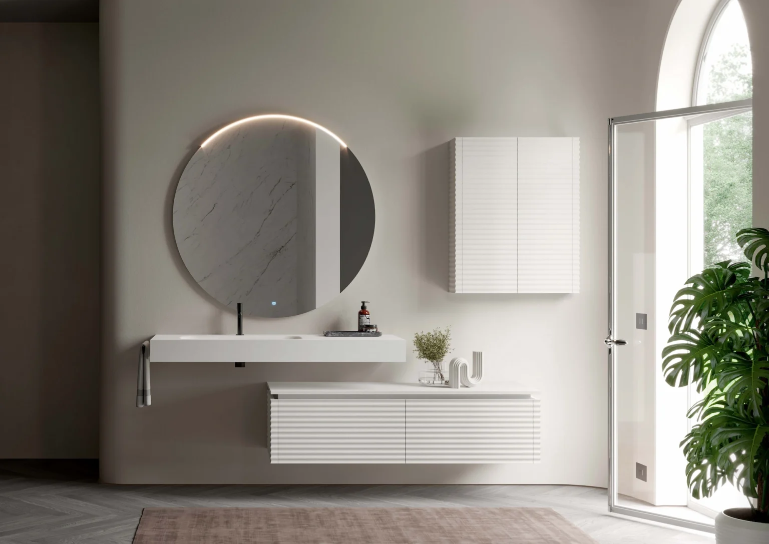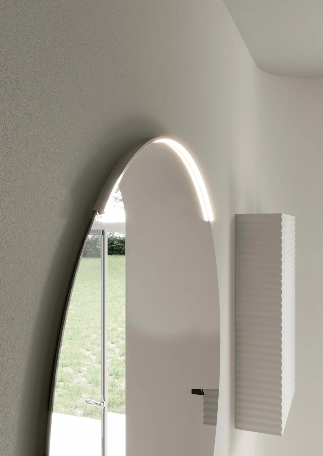 Lampada Arko installabile sulle specchiere della famiglia Lap. Dotata di illuminazione a LED. IP44 – 3000 K o 4000 K W da 6 a 12 – Lm da 650 a 1.350