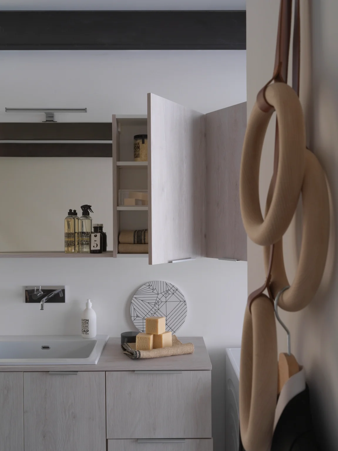 Lampada Double installabile sulle specchiere Elma, Elmas, Sat/Sal e i pensili a specchio bifacciali. Dotata di illuminazione a LED. IP44 – 4000 K W 9 – Lm 1.400