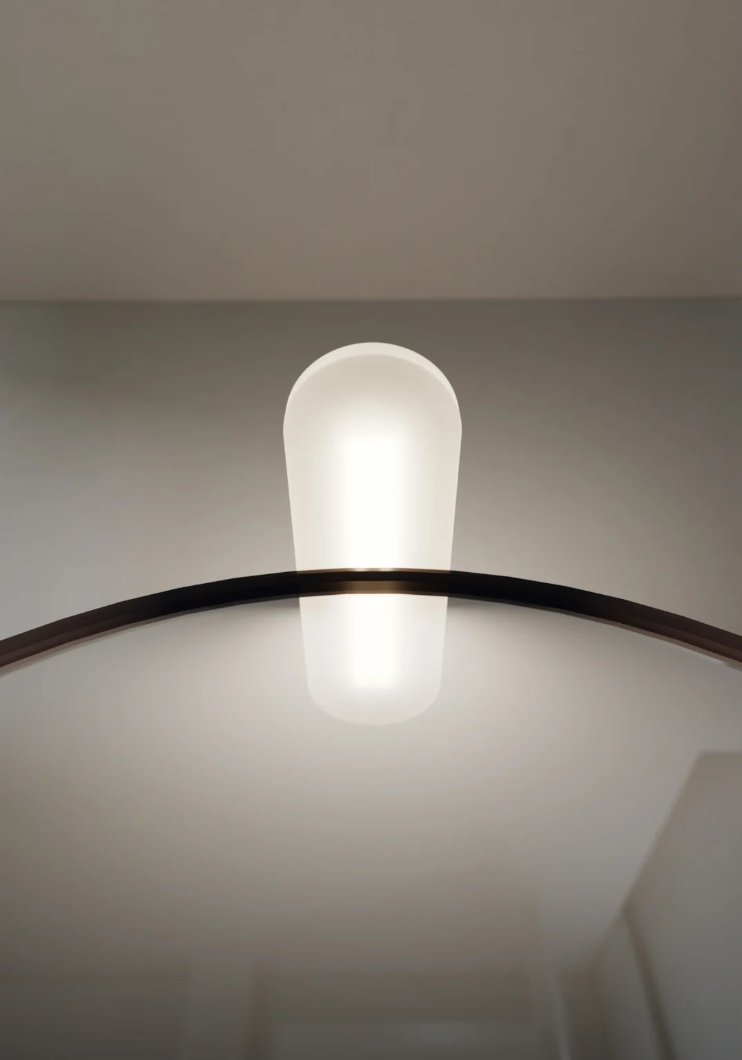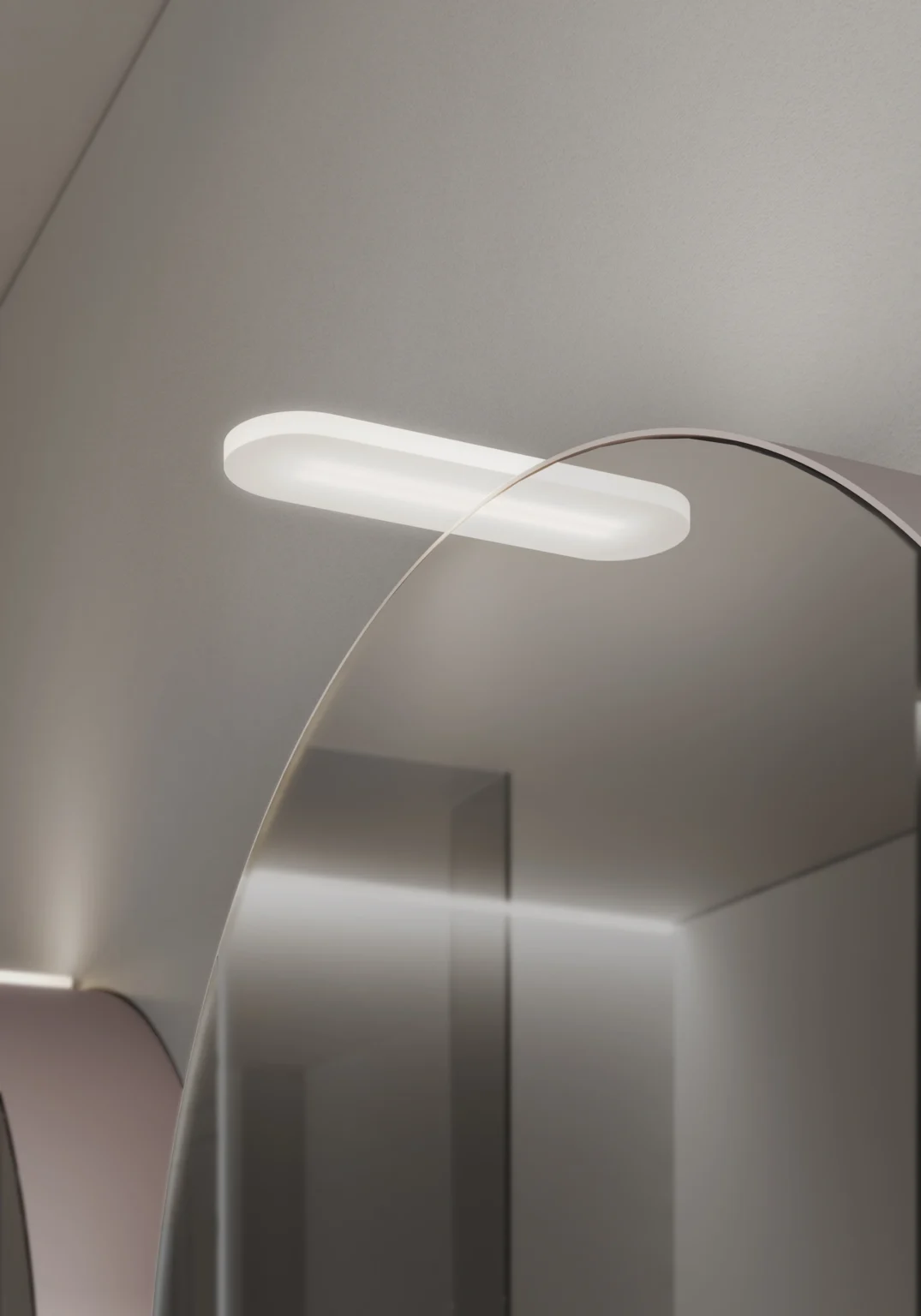 Lampada Muse in Metacrilato (con supporto in acciaio) installabile sulle specchiere contenitore Arena e Giotto. Dotata di illuminazione a LED. IP44 – 4000 K (a richiesta 3000 K)