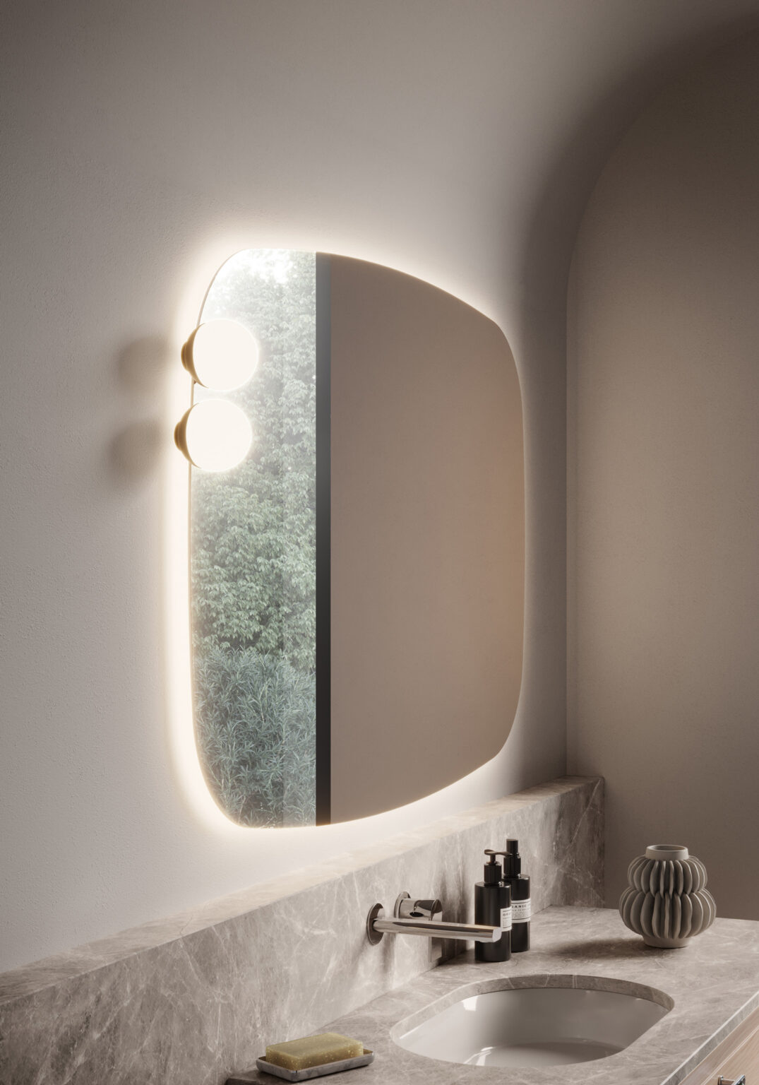 Lampada Scarlet installabile sulle specchiere Move, Flow, Platea, Lunetta e Ninfea. Dotata di illuminazione a LED. IP44 – 3000 K o 4000 K W 5 – Lm 450