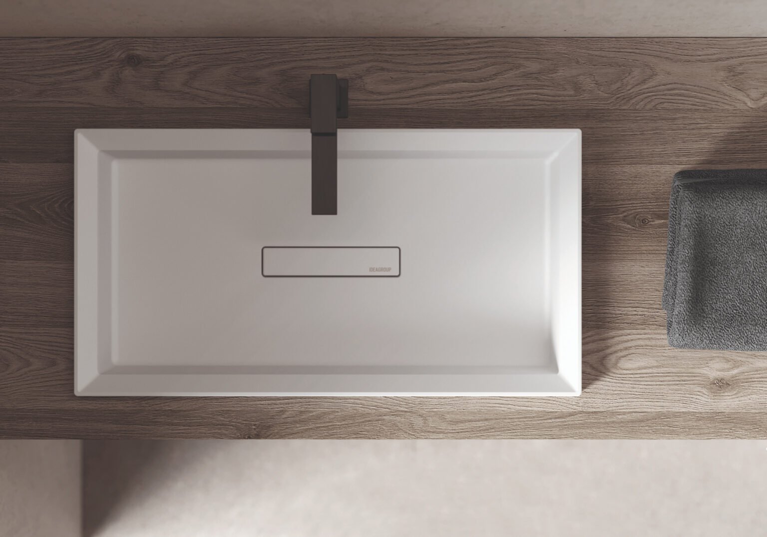 I lavabi in Mineralsolid e Mineralux sono composti da cariche minerali naturali (carbonati di calcio e triidrati di alluminio) e da resine poliesteri. Il film di gelcoat che ne riveste la superficie è un poliestere acrilato che conferisce una finitura ad effetto opaco. Disponibili nella finitura Bianco opaco e colori campionario Ideagroup (no Nero e Metal Color).