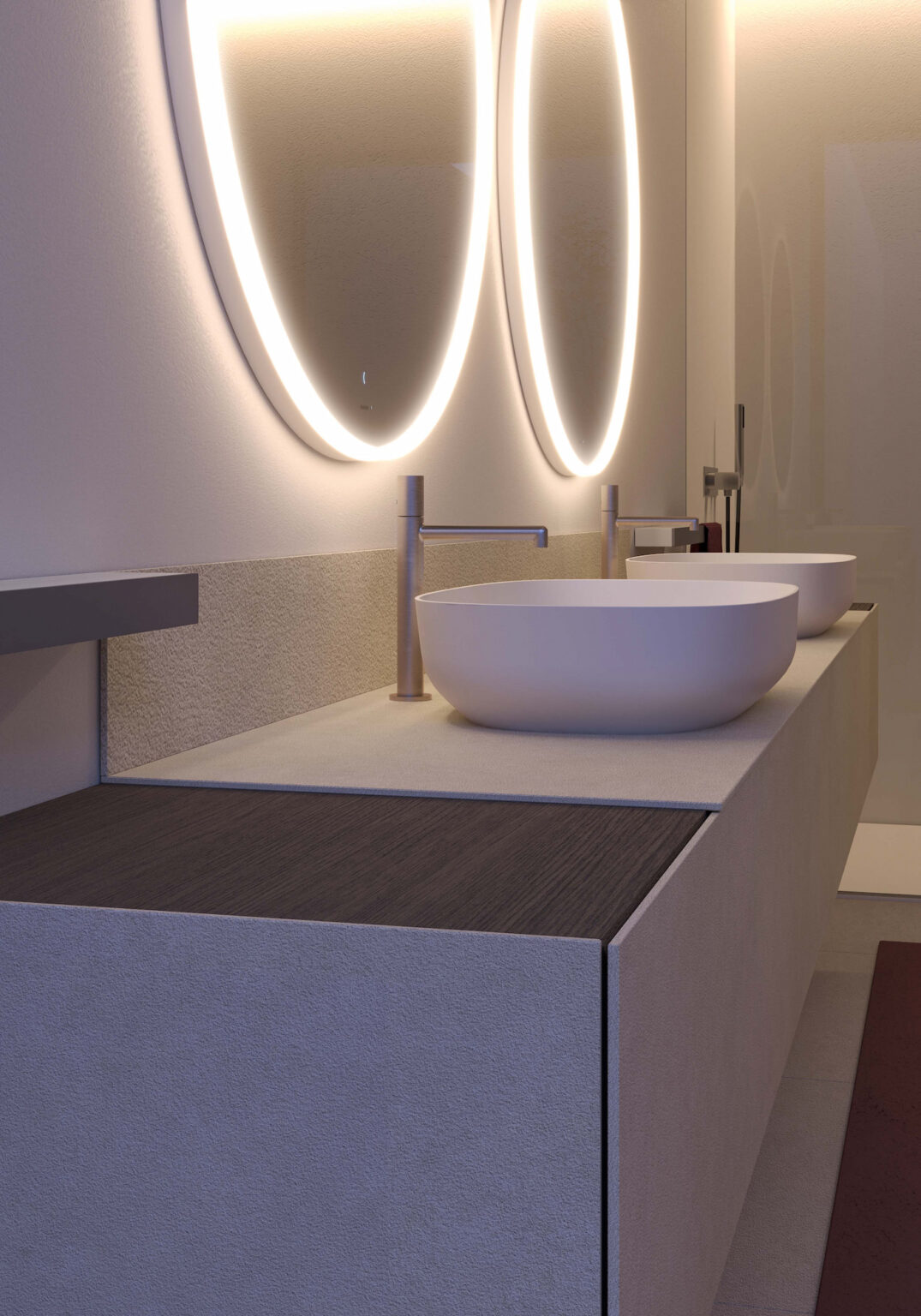 Materiale conosciuto per la bellezza simile alla pietra naturale dall’effetto soft touch, il Cristalplant® è composto per la maggior parte da cariche minerali di triidrati di alluminio di elevata purezza, legati da resine di origine vegetale (corn/mais) Biobased®. Resistente, antibatterico perché fotocatalitico, ripristinabile a graffi, urti e ingiallimento per una lunga durata nel tempo, è riciclabile a fine vita.