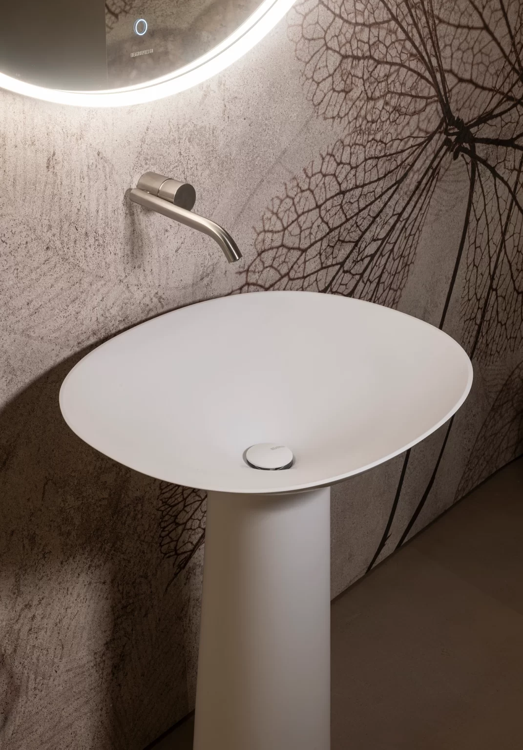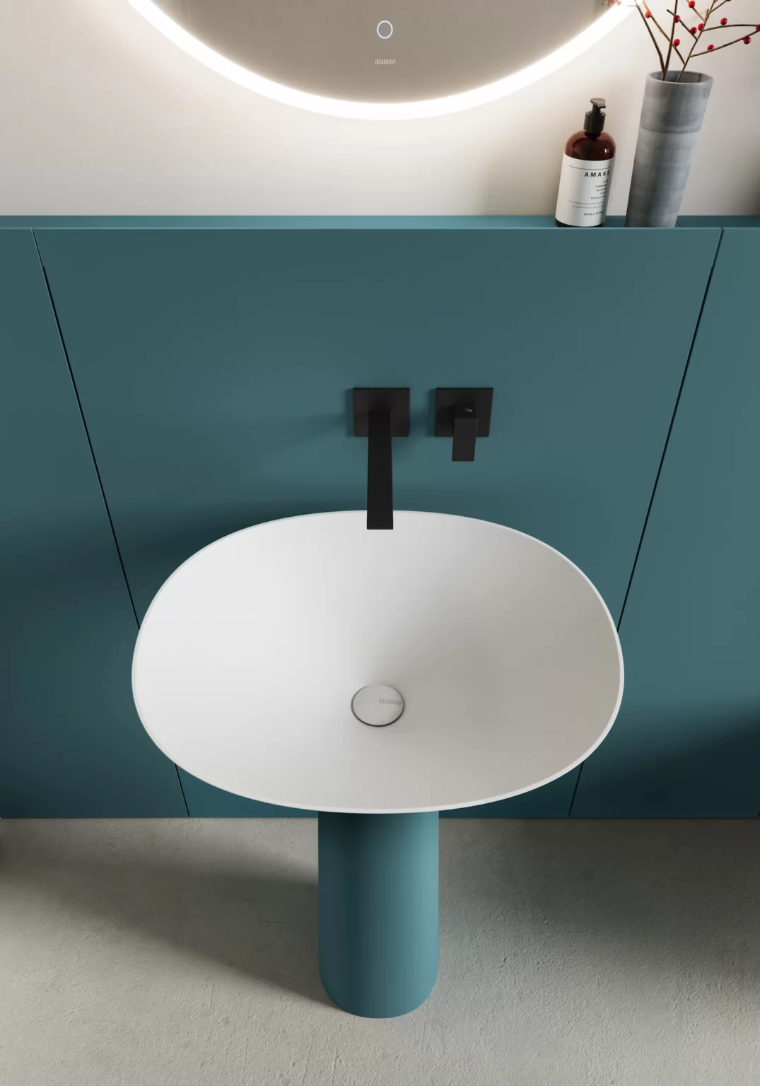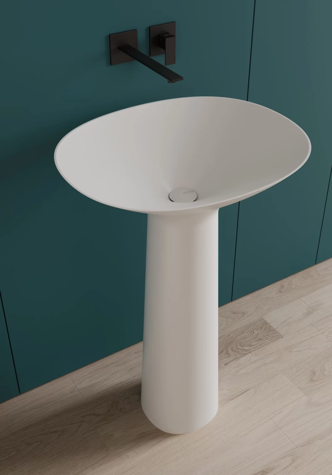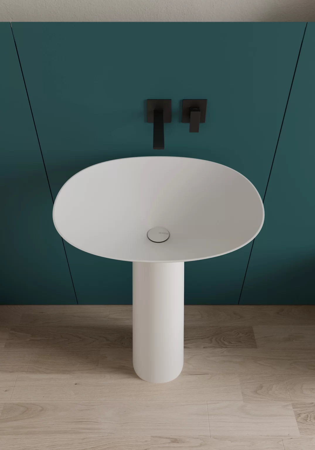 Lavabo Royal freestanding in Cristalplant® bianco opaco, colorato esternamente o colorato totale nei colori opachi e Metal Color Ideagroup (colori Metal solo esterno). Senza troppopieno.
