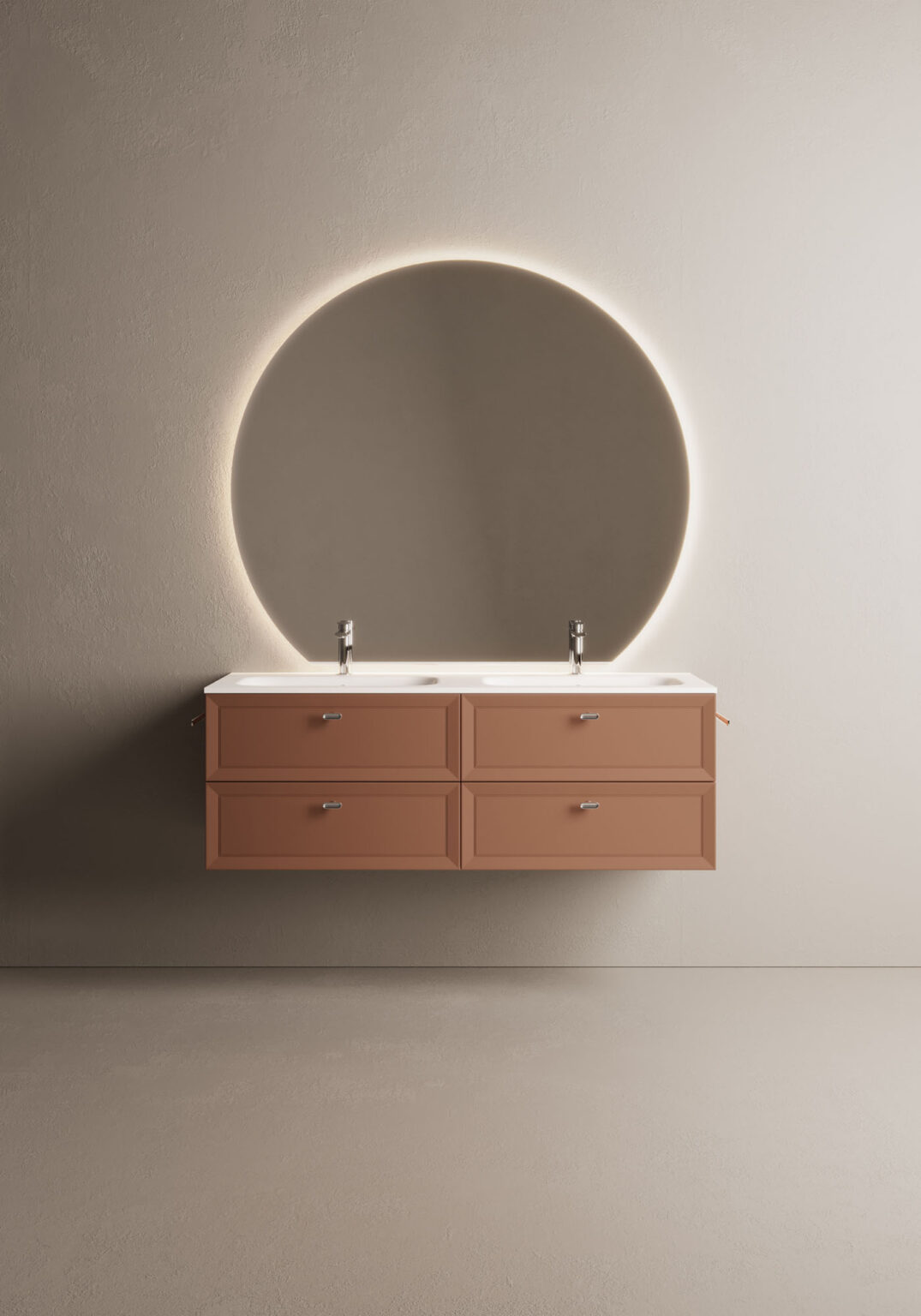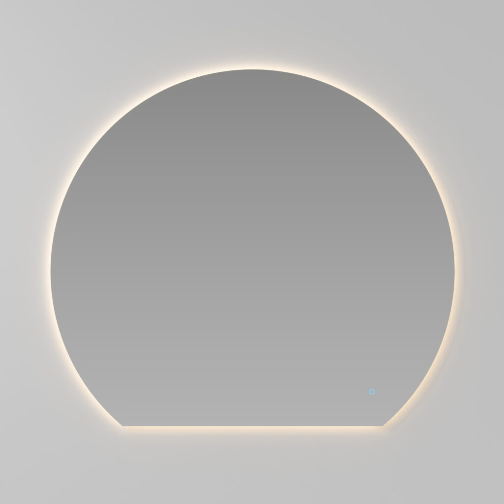 Specchio Platea dalla forma sagomata e con bordo filo lucido tondo. Retroilluminato a led.
