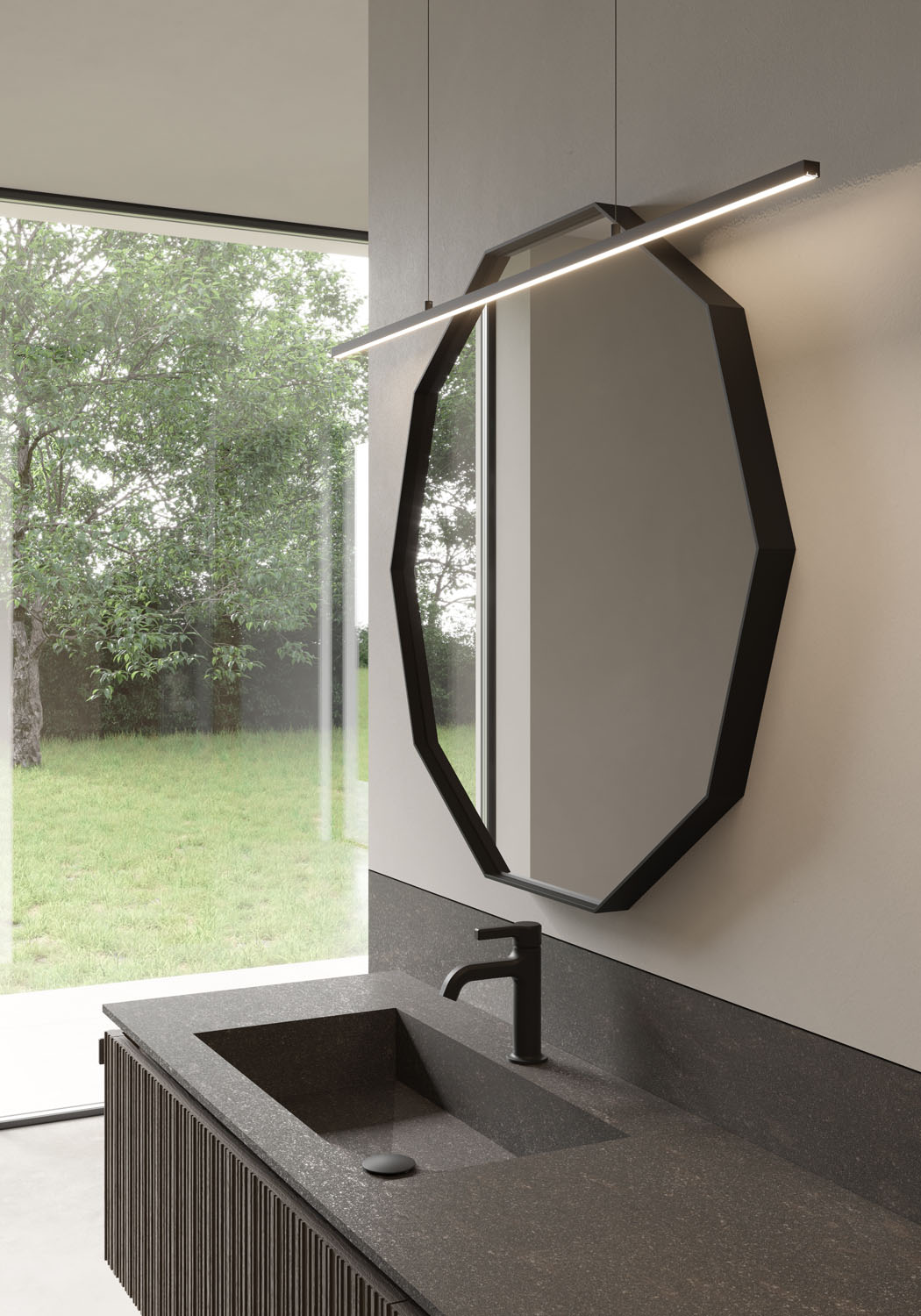 Specchio Deka con telaio in alluminio. Senza illuminazione. Compatibile solo con lampada led MINIMAL. IP44 – 4000 K W 7 – Lm 560