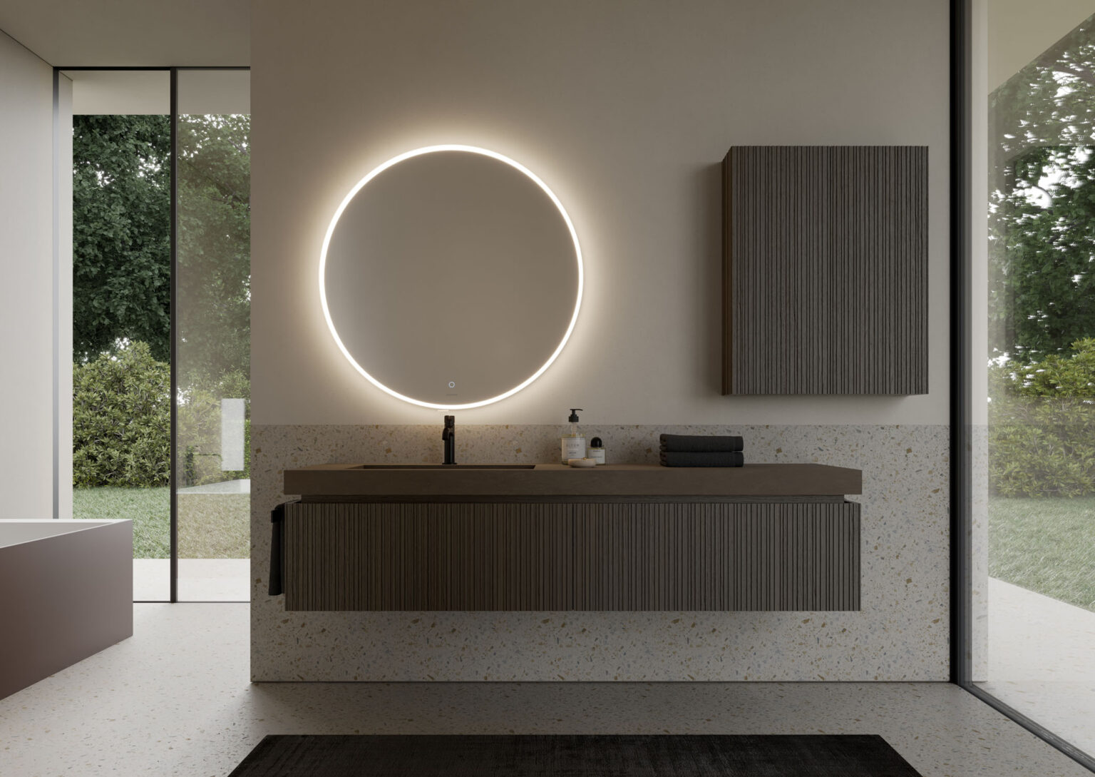 Specchio Eclissi con illuminazione perimetrale, accensione Touch ON/OFF e luce cambio colore 2700/6000 K. IP44 W da 17 a 29 – Lm da 1.500 a 2.600