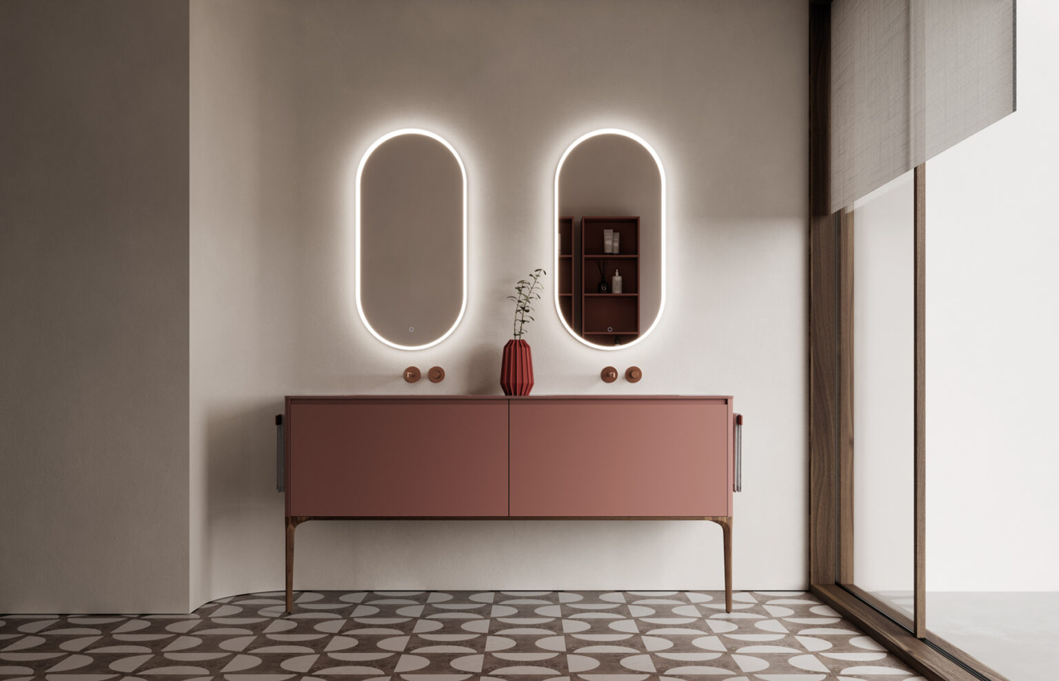 Specchio Nettuno con illuminazione perimetrale, accensione Touch ON/OFF e luce cambio colore 2700/6000 K. Installazione solo verticale. IP44 W 25 – Lm 2.500
