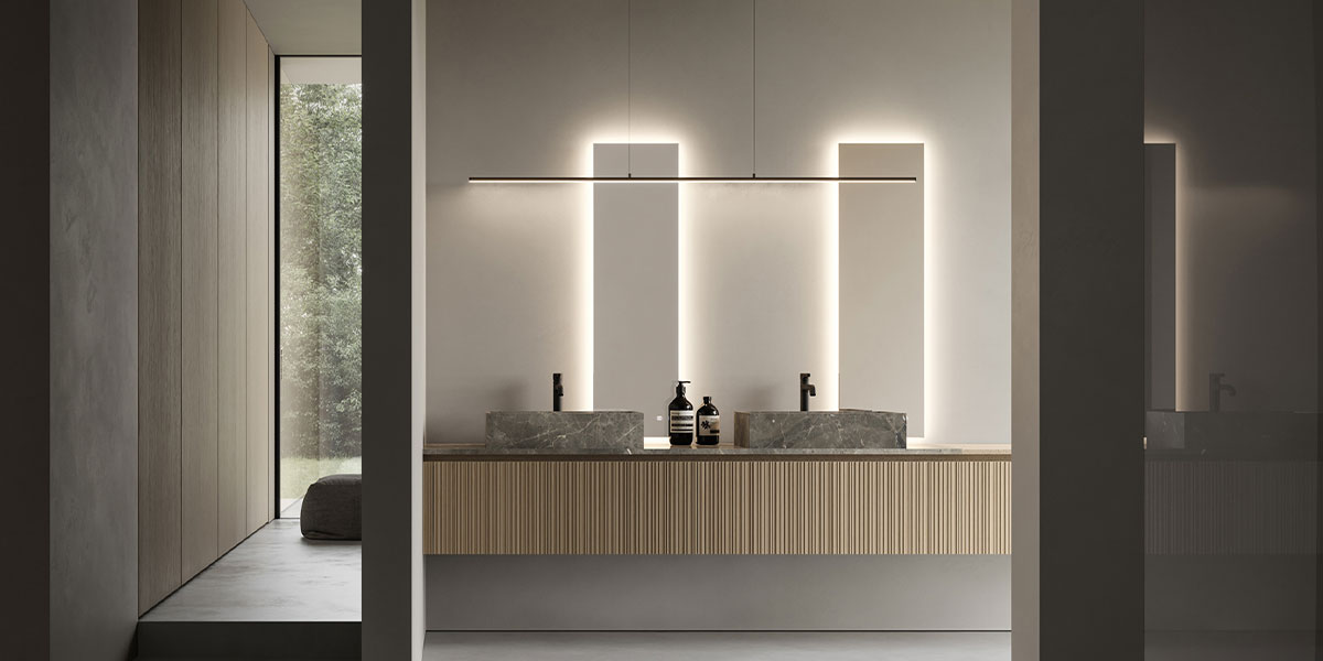 Progettiamo mobili bagno e soluzioni per lo spazio lavanderia che rispondono alle esigenze estetiche e funzionali di clienti residenziali e contract. Le collezioni includono una vasta gamma di materiali, finiture, dettagli e complementi, come lavabi, specchi e sistemi di illuminazione.
