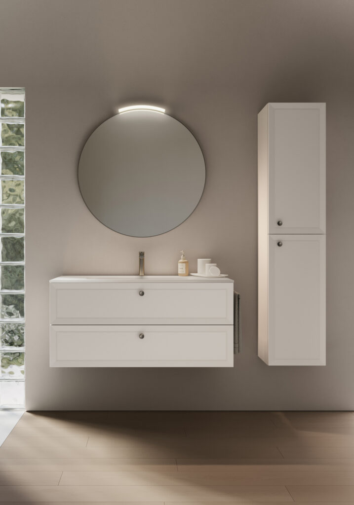 La collezione Provence interpreta il concetto di mobili bagno classici contemporanei attraverso un design equilibrato, capace di unire eleganza senza tempo e sensibilità moderna. Le ante a telaio, ispirate alla tradizione del mobile artigianale, vengono reinterpretate con linee pulite e proporzioni armoniche, dando vita a un linguaggio estetico sobrio e raffinato. Pensata per ambienti bagno curati e funzionali, Provence si distingue per la qualità dei materiali, l’attenzione al dettaglio e la possibilità di creare composizioni personalizzabili, capaci di valorizzare lo spazio e definire un’atmosfera autentica e coerente con lo stile di chi la vive.