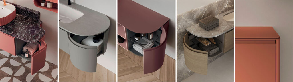 Elementi contenitivi curvi e configurazione a monoblocco installabile anche nei piccoli spazi
