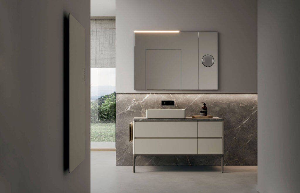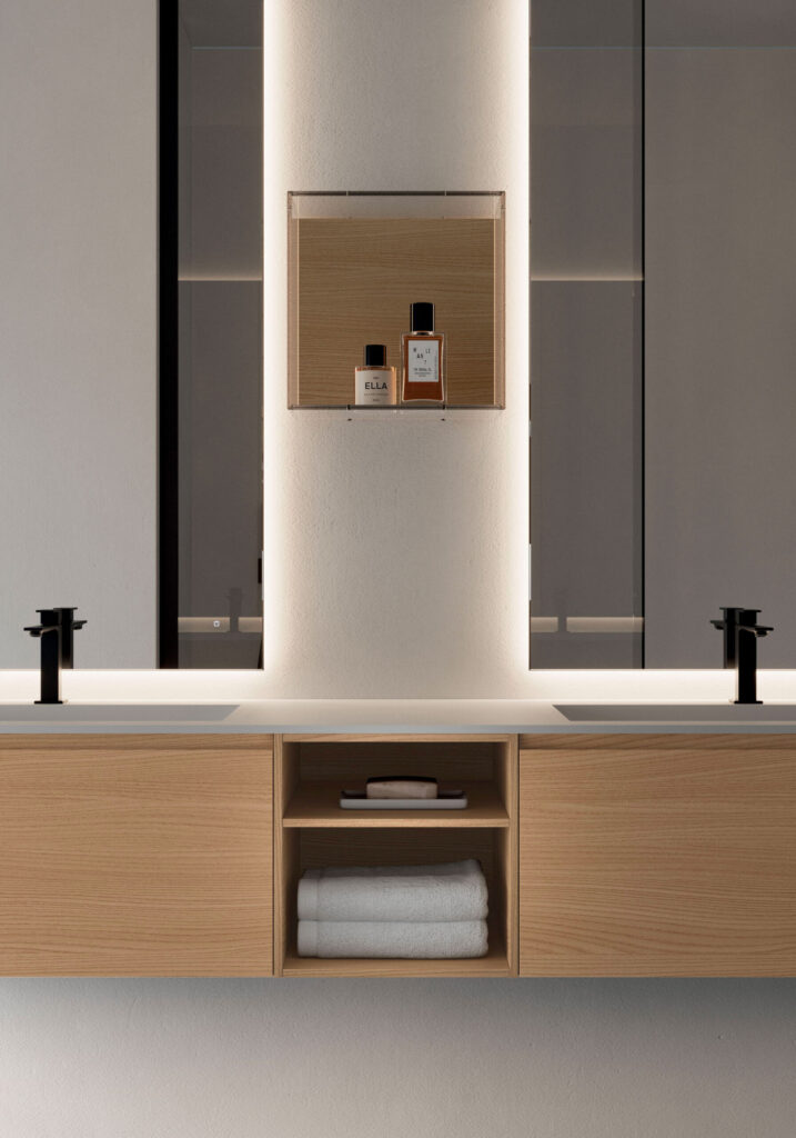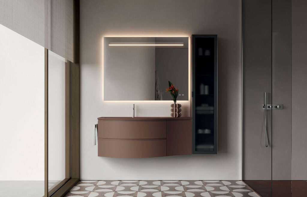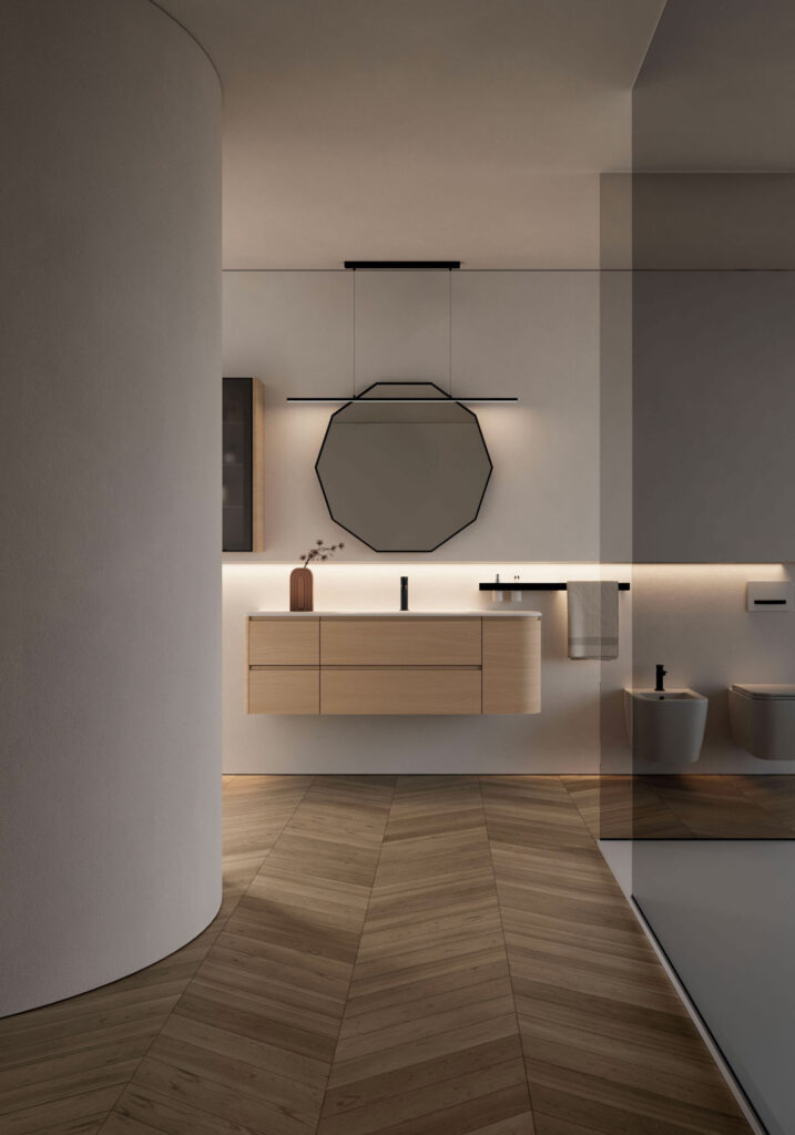 Seventy • Form è la collezione di mobili bagno che ridefinisce l’arredo bagno contemporaneo. Materiali tecnici e naturali si fondono con forme morbide e lineari, creando soluzioni versatili e personalizzabili.