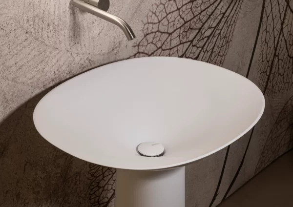 Royal è il nuovo lavabo freestanding in Cristalplant® di morbida bellezza, dal bacino ovoidale dai bordi sottili e la base conica rastremata verso l’alto, soluzione progettuale per un ambiente bagno contemporaneo ed elegante. Realizzato in Cristalplant, materiale conosciuto per la bellezza simile alla pietra naturale dall’effetto soft touch, è disponibile in bianco opaco, laccato esternamente o laccato esternamente e internamente.