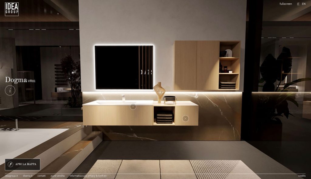 Uno spazio virtuale user-friendly e responsive, pensato per farti scoprire, ovunque tu sia, tutte le novità di prodotto e le nostre collezioni più iconiche, dall’arredo bagno di Aqua e Idea, alle proposte di cabine doccia, vasche e piatti doccia Disenia. Naviga all’interno del virtual showroom per scoprire tutti i plus della collezione e trova la soluzione più adatta alle tue esigenze!